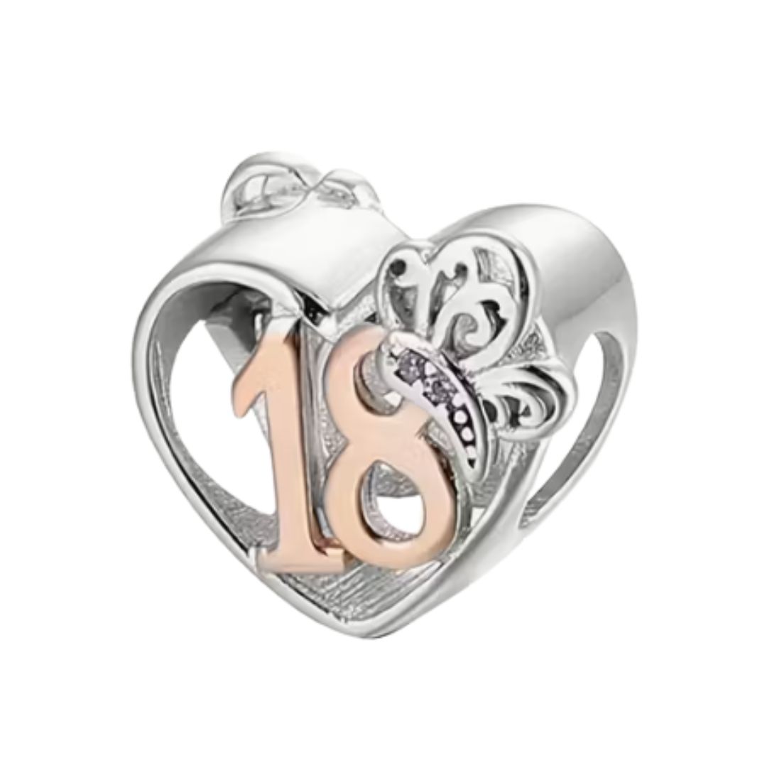 18 Birthday Butterfly Heart Charm