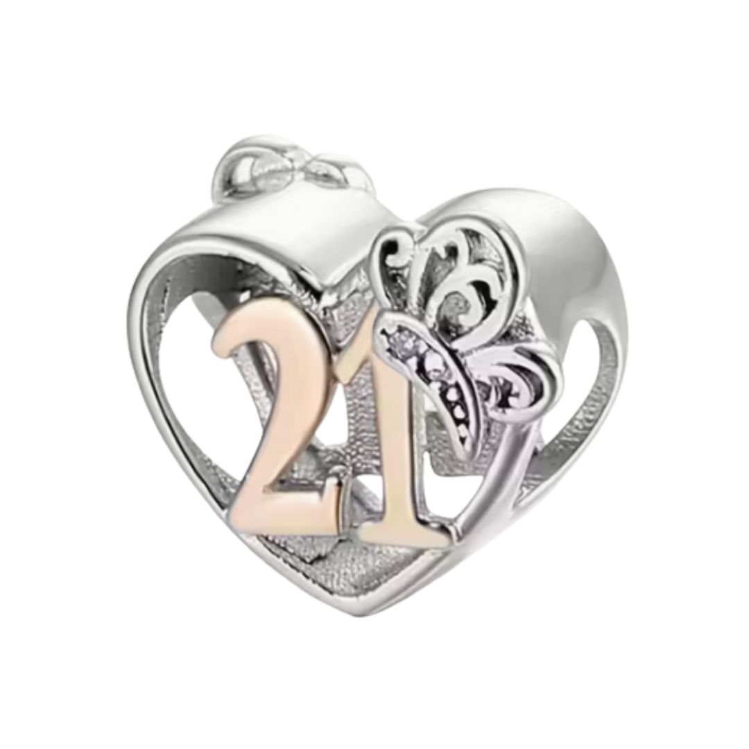 21 Birthday Butterfly Heart Charm