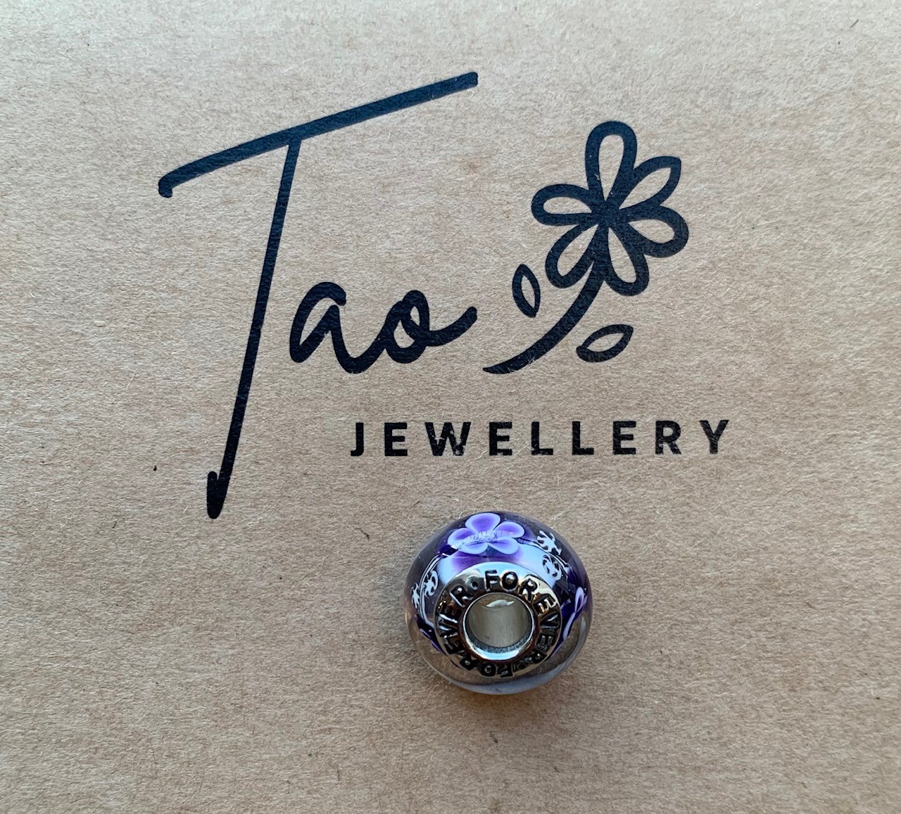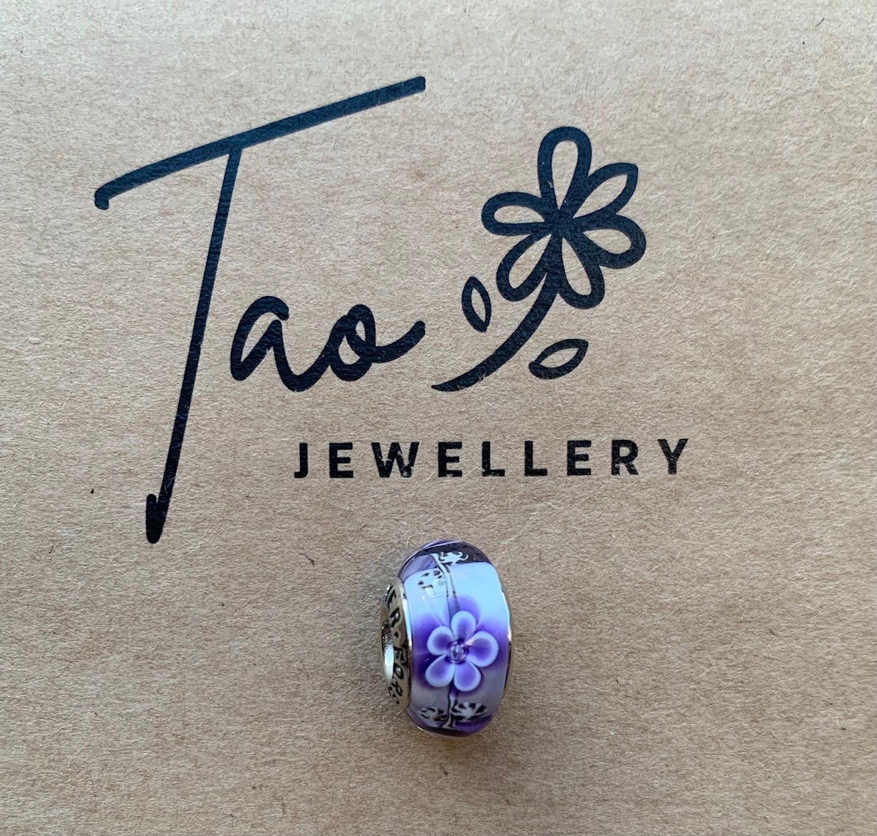 White with Purple Flowers Glass Bead Charm