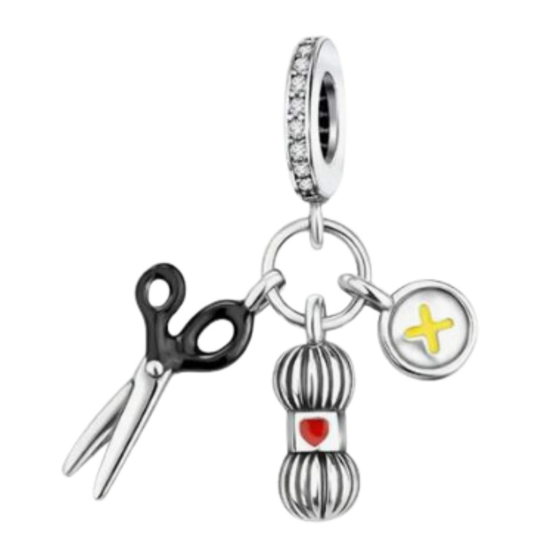 Scissors, Wool & Button Pendant Charm